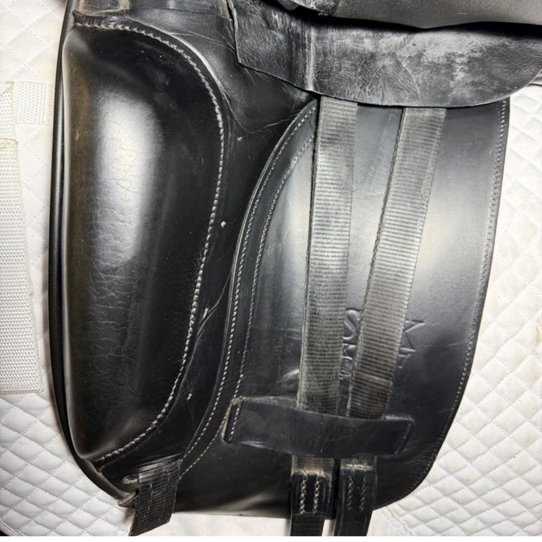 This used Albion SLK dressage saddle is in good condition with the usual flap wear and surface scratches you would expect to see on a second hand saddle. Overall fading can be seen to the saddle.